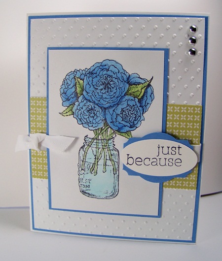 This week's Flourishes Timeless Tuesday's challenge was a color challenge, blue & green. I was reminded of my Grandma while I was making this. She used to say that it could be any color as long as it was blue! LOL!!!